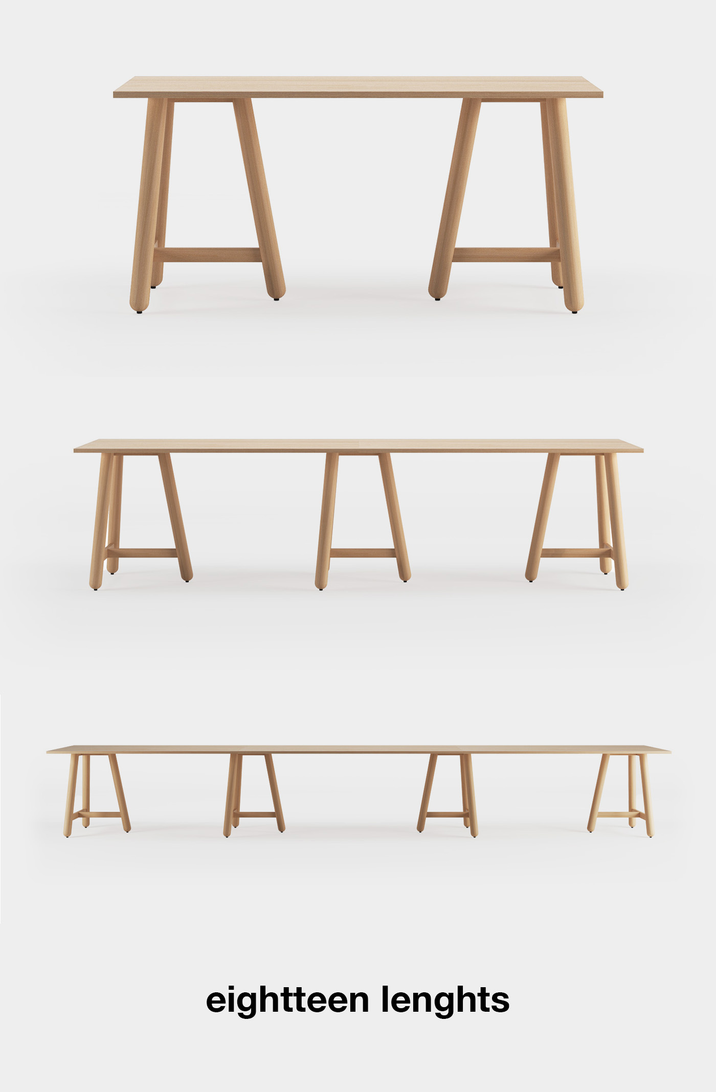 600x100cm: 3 T-frames 100, 3 tops 199x99x3cm, 4 beams 180cm